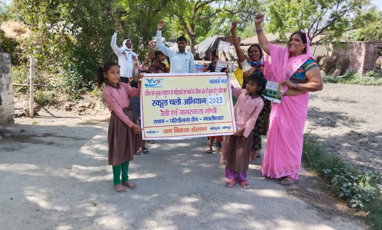 मछली शहर के अंतर्गत आज दिनांक 11 अप्रैल 2023 को जन विकास संस्थान, नौपेडवा, जौनपुर द्वारा संचालित दलित एवं मुसहर समुदाय के महिलाओ एवं बच्चो के जीवन स्तर में सुधार हेतु संचालित परियोजना के अंतर्गत ग्राम पंचायत सराय बीका व बटनहित में सामुदायिक जन संगठन सावित्री बाई फुले नारी संघ व नारीशक्ति संगठन द्वारा प्राथमिक विद्यालय बटनहित व सराय बीका में मुसहर व दलित समुदाय के बच्चों का नामांकन हेतु स्कुल चलो अभियान रैली व गोष्टी का आयोजन किया गया। जिसमें परियोजना से जुड़े सराय बीका , बटनहित दोनो रैली में लगभग 215 बच्चे और दलित व मुसहर समुदाय के 76 महिलाओं ने रैली में प्रतिभाग किया , और दलित समुदाय में जाकर लोगो को नामांकन कराने हेतु जागरूक किया गया नारी संगठन द्वारा रैली व गोष्टी मे सहयोग जन विकास संस्थान से कम्युनिटी डेवलपर समरबहादुर जी, सुमन जी, परियोजना कोऑर्डिनेटर अरविंद जी, प्राथमिक विद्यालय बटनहित से प्रधानाध्यापक श्री राजेश कुमार सिंह , सहायक अध्यापक रेनू जी, पुष्प लता सिंह शिक्षामित्र , बबिता सिंह आंगनवाड़ी ग्राम पंचायत सराय बिका के प्रधानाध्यापक श्री देवी प्रसाद, सहायक अध्यापक विकास चन्द, राहुल त्रिपाठी, संध्या जी, शिक्षामित्र साधना सिंह, आंगनवाड़ी गीता कनौजिया, मीरा सरोज, पुष्पा पटेल, द्वारा सहयोग किया गया ।