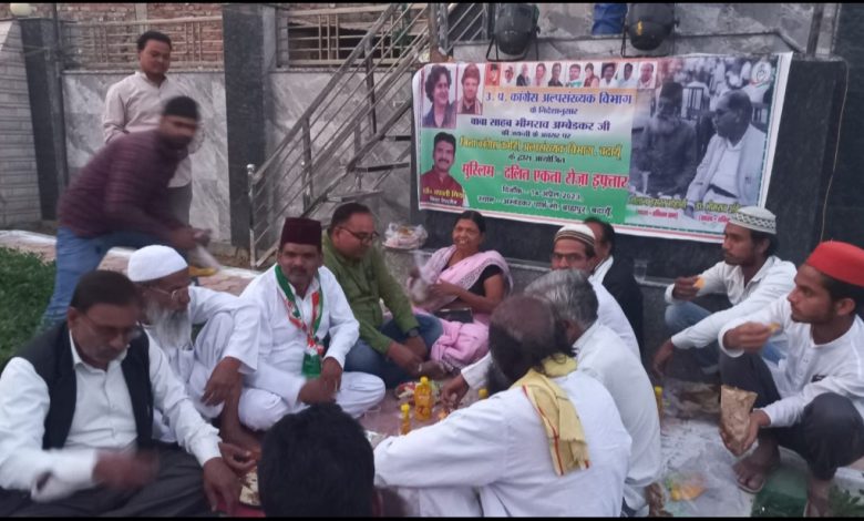 बाबा साहब अंबेडकर जी की मूर्ति के पास दलित मुस्लिम एकता रोजा इफ्तार करके कांग्रेस ने दिया भाईचारे का संदेश