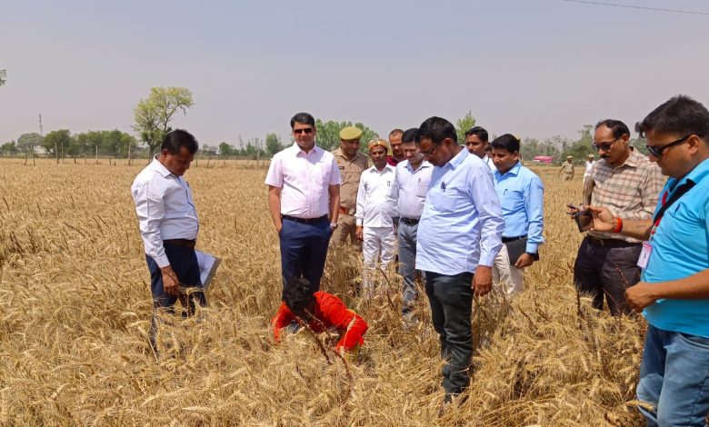 गेहूं उत्पादन के मूल्यांकन को लेकर डीएम की उपस्थिति में क्राप कटिंग