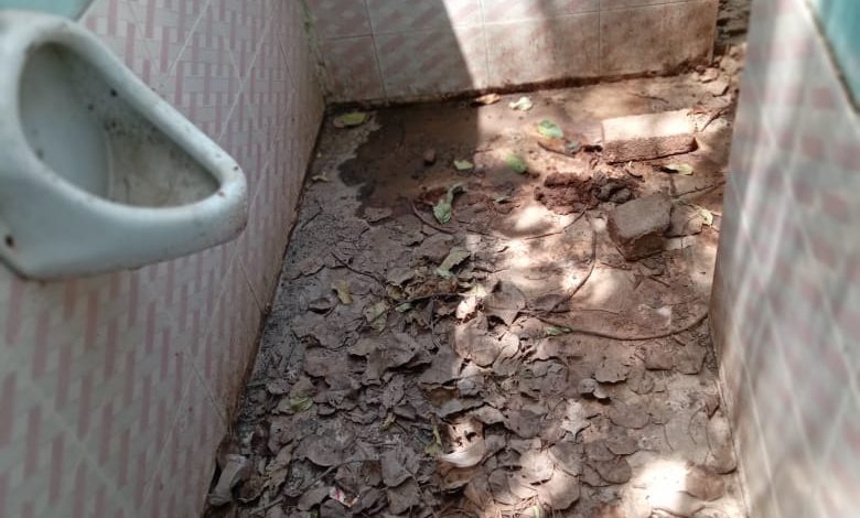 ग्राम पंचायत प्रधान द्वारा बनाए गए शौचालय मैं आधा काम ना होने के कारण गंदगी