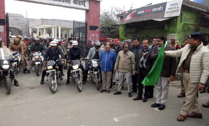 बदायूँ : 05 जनवरी। यातायात नियमों के संबंध में लोगों को जागरूक करने हेतु दिनांक 05 जनवरी 2023 से 04 फरवरी 2023 तक चलाये जा रहे अभियान सड़क सुरक्षा माह को सफल बानाने के उद्देश्य से कलेक्ट्रेट परिसर से जिलाधिकारी मनोज कुमार ने वरिष्ठ पुलिस अधीक्षक डॉ0 ओ0पी0 सिंह के साथ संयुक्त रूप से जागरूकता वाहन रैली को हरी झण्डी दिखाकर रवाना किया। जिलाधिकारी ने जनपद वासियों से यातायात नियमों का पालन करने का अवाहन करते हुए कहा कि मोटर साइकिल चलाते समय हेलमेट और कार में सीटबैल्ट का प्रयोग अनिवार्य रूप से करें।