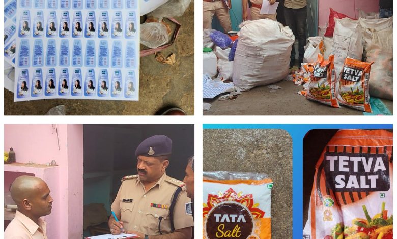 पुलिस को पुरेनी बस्ती स्थित जयलाल साहू के मकान में नकली टाटा नमक के 1kg की क्षमता वाले 1100 नग सीलबंद तैयार किए गए पैकेट मिले हैं , जिसके लिए Tetva कंपनी के नमक की बोरियां का नमक इस्तेमाल किया गया है। मौके पर Tetva कंपनी के नमक की भरी और खाली बोरियां मिली है। पुलिस को 90ml की क्षमता वाले नकली जैसमिन कोकोनट हेयर ऑयल की प्लास्टिक की भरी हुई 1000 शीशी मिली जिनमें पैराशूट एडवांसड जैसमिन कोकोनोट हेयर ऑयल लिखा है जिन्हें भरने के लिए इस्तेमाल किया गया तीन कुप्पो में बंसल कंपनी का साधारण तेल जप्त किया गया है। टाटा कंपनी के 1kg के क्षमता वाले 400 नग रैपर जप्त किए गए हैं। नकली तेल बनाए जाने हेतु 90ml की क्षमता वाली 1500 प्लास्टिक की शीशियां मय ढक्कन, 23000 स्टीकर, टाटा नमक की प्लास्टिक की खाली 500 रैपर , तेल भरे जाने हेतु चुंगी एवं सीलिंग मशीन जप्त की गई है।