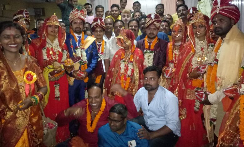 आज अक्षय तृतीया के शुभ अवसर पर पिछले 6 साल से निरंतर चली आ रही आदर्श सामूहिक विवाह जिसे इस वर्ष भी निरंतर रखा गया। जिसमे पिछले वर्ष से इस वर्ष जोड़ियों की संख्या में बढ़ोतरी देखी गई। इस वर्ष कुल 14 नव युगल जोड़ियों ने देशहा श्रीवास समाज बिलासपुर के द्वारा कराए जा रहे आदर्श सामूहिक विवाह जो गायत्री परिवार के सदस्यों के द्वारा संपन्न कराया जाता है जो की देशहा श्रीवास भवन,सेन मार्ग,मंगला चौक में निशुल्क रजिस्ट्रेशन कर लाभ लिया । देशहा श्रीवास समाज के आदर्श सामूहिक विवाह कार्यक्रम में मुख्य अतिथि के रूप में प्रथम दिवस पूर्व जिला पंचायत सदस्य संतोष कौशिक गुरुजी,अध्यक्षता त्रिलोक श्रीवास प्रांताध्यक्ष सर्व सेन समाज,विशिष्ठ अतिथि महिला प्रकोष्ठ अध्यक्ष श्रीमति ज्योती श्रीवास रही। उपस्थित नव युगल जोड़ो एवं आयोजन समिति को संबोधित करते हुवे संतोष कौशिक ने कहा की सामूहिक विवाह का आयोजन पुण्य का कार्य है सामूहिक विवाह सिर्फ एक विवाह का आयोजन ही नही है अपितु इसके प्रभाव एवं लाभ समाजहित में बड़े दूरगामी है ऐसे आयोजनों से न सिर्फ फिजूलखर्ची कम होता है बल्कि हम दहेज जैसे कुरीतियों से भी समाज को मुक्त करने का पुण्य काम करते है।उन्होंने सभी जोड़ो को बधाई देते हुवे उनके सुखद दाम्पत्य जीवन की कामना की और आयोजन समिति को आयोजन के लिए बधाई दी।समाज के प्रांताध्यक्ष त्रिलोक श्रीवास ने कहा की निश्चित ही आज का दिन देशहा श्रीवास समाज के इतिहास में स्वर्णिम अक्षरों से लिखा जायेगा सामूहिक विवाह का बढ़ता प्रचलन समाज के बेहतरी के लिए अहम साबित होगा हमे ऐसे आयोजन करते रहना चाहिए। देशहा श्रीवास समाज महिला प्रकोष्ठ की अध्यक्ष श्रीमति ज्योती श्रीवास ने कहा की आज अक्षय तृतीया के पुण्य दिवस पर जो ये आयोजन हो रहा है इससे समाज में एक नया संदेश गया है पुरानी कुरीतियों को तोड़कर अब नए सिरे से समाज को प्रगति के पथ पर आगे ले जाने का कार्य इस आयोजन से हुआ है।आयोजन में देशहा श्रीवास समाज बिलासपुर के अध्यक्ष श्री सुरेन्द्र श्रीवास ने सभी 14 नव युगल जोड़ियो को गृहस्थ जीवन के लिए उपहार सामग्री प्रदान की। विवाह के सभी रीति रिवाज के साथ समाज के लोगो ने दुल्हो की बारात बैंड बाजे पटाखों के साथ निकाली और सभी के लिए भोजन की व्यवस्था भी समाज द्वारा रखी गई थी।पूर्व विधायक तखतपुर जगजीत सिंह मक्कड़ भी आयोजन में पहुंचकर वर – वधु को उपहार एवं आशीर्वाद प्रदान किए। इस अवसर पर देशहा श्रीवास समाज बिलासपुर के अध्यक्ष श्री सुरेन्द्र श्रीवास,उपाध्यक्ष लक्ष्मी श्रीवास,सचिव चंद्रमणी श्रीवास,सह सचिव सुमित श्रीवास, कोषाध्यक्ष संतोष श्रीवास, सह कोषाध्यक्ष बसंत श्रीवास,मनोज श्रीवास,राजू श्रीवास,राजकुमार श्रीवास,गोरेलाल श्