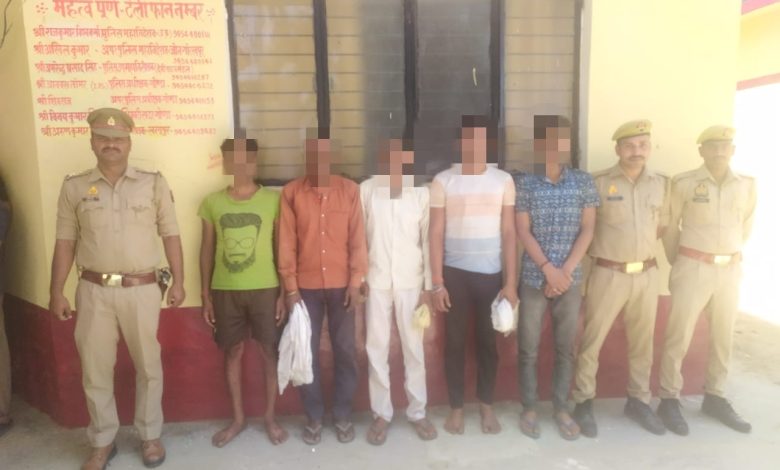 सम्पत्ति उगाही करने के लिए बलवा व मारपीट करने के 05 वांछित अभियुक्त गिरफ्तार-