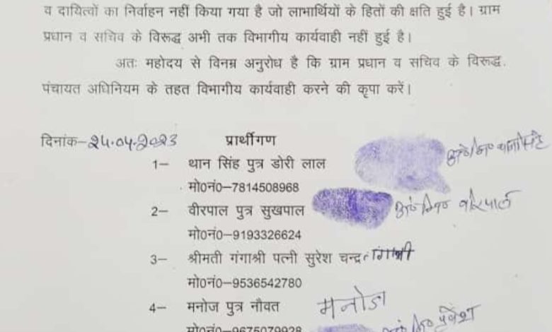 ग्रामीणों ने बताया कि जिलाधिकारी को पत्र 11/03/2023 को दिया गया जिसमें ग्राम प्रधान व सचिव ने पात्र लोगों को अपात्र कर दिया था। जिसकी जांच कार्यालय के पत्रांक 2336 दिनांक 25/03/2023 द्वारा कमेटी गठित कर कराई गई।