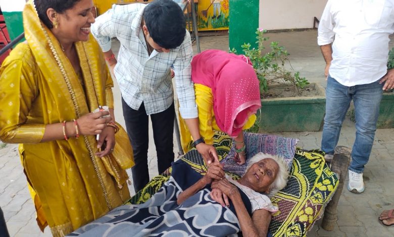 जनपद गाजियाबाद के लोनी नगर पालिका चुनाव में लगभग 100 साल की बूढ़ी महिला रघुबीरो देवी ने भी किया मतदान।