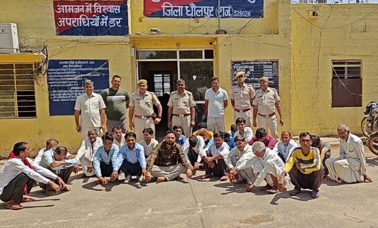 पुलिस मुख्यालय के निर्देशानुसार, महानिरीक्षक पुलिस भरतपुर रेंज भरतपुर गौरव श्रीवास्तव . के सुपरवीजन एवं जिला पुलिस अधीक्षक मनोज कुमार के नेतृत्व में जिले में ऑपरेशन सुदर्शन के अन्तर्गत धौलपुर पुलिस सम्पत्ति संबंधी मामलों (चोरी, लूट, नकबजनी, डकैती एवं वाहन चोरी) में वांछित अपराधियों के विरुद्ध ताबड़तोड़ कार्यवाही करते हुए जिले में अलग अलग स्थानों पर पुलिस टीमो ने दबिश दी है| जिला पुलिस अधीक्षक ने बताया है कि आज की कार्रवाई के दौरान जिले भर में विभिन्न टीमों ने दबिशें देकर चोरी, लूट, नकबजनी, डकैती एवं वाहन चोरी के मामलों में वांछित चल रहे 249 आरोपियों को गिरफ्तार करने में सफलता हासिल की है| इसके साथ ही 7 आर्म्स एक्ट, 14 जुआ एवं सट्टा अधिनियम, 10 अवैध शराब, 1 अवैध खनन के मुकदमे दर्ज हुए है| जिला पुलिस अधीक्षक ने बताया है कि वांछित अपराधियों एवं अवैध कार्यों में लिप्त व्यक्तियों की धडपकड का अभियान आगे भी जारी रहेगा|
