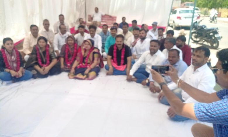 नगर परिषद में व्याप्त भ्रष्टाचार के खिलाफ पार्षदों का धरना क्रमिक अनशन प्रारंभ/धौलपुर की प्रमुख खबर-नगर परिषद पार्षदों द्वारा आज नगर परिषद धौलपुर पर धरना प्रदर्शन प्रारंभ किया गया/ जिनमें से 5 पार्षद भूख हड़ताल पर बैठे हैं/क्रमिक अनशन पर बैठने वाले पार्षदों में माया महेश शर्मा उपसभापति, कुक्कू शर्मा नेता प्रतिपक्ष, भूपेन्द्र घुरैया उप नेता प्रतिपक्ष, आशा धीरू जाट पार्षद, भारती विवेक शर्मा छावनी पार्षद आज क्रमिक अनशन पर बैठे हैं/पार्षदों का कहना है कि जब तक हमारी सभी मांगें नहीं मान ली जाती इस तरह से प्रत्येक दिन क्रमिक अनशन भूख हड़ताल किया जाएगा। आज धरने पर 42 से अधिक पार्षद उपस्थित रहे।