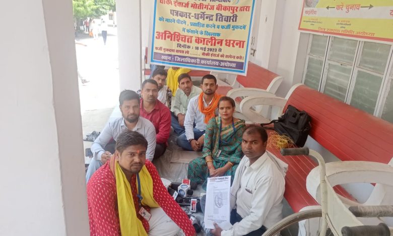 चौकी इंचार्ज मोतीगंज थाना बीकापुर द्वारा पत्रकार- धर्मेन्द्र तिवारी को मारने पीटने प्रताड़ित करने व फर्जी मुकदमें में फंसाने के खिलाफ अनिश्चित कालीन डीएम कार्यालय के सामने धरना प्रदर्शन चालू,पत्रकार को न्याय दिलाने के लिए जनपद के सभी पत्रकार जिलाधिकारी कार्यालय पर अनिश्चितकालीन धरने पर बैठे। वहीं समाजसेवी अर्चना तिवारी व समाजसेवी उमेश कुमार तिवारी पत्रकार के समर्थन में धरने पर बैठे और दोनों समाजसेवी ने बताया पत्रकार का उत्पीड़न किसी भी कीमत में बर्दाश्त नहीं किया जाएगा पत्रकार देश का चौथा स्तंभ है अगर जिला अधिकारी व वरिष्ठ पुलिस अधीक्षक द्वारा चौकी इंचार्ज के खिलाफ कार्यवाही नहीं की जाती तो पूरे भारतवर्ष के समाजसेवी पत्रकार के समर्थन में उतरेंगे।