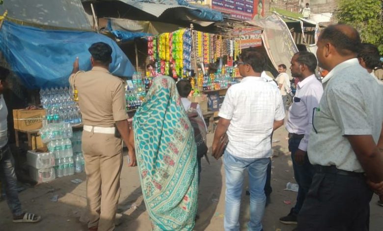बुल्डोजर देख दुकानदारों ने अपनी दुकानों के सामने रखे सामान को समेटा ॥